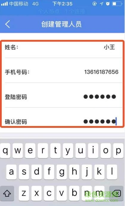 進(jìn)入‘人員管理’界面后,點(diǎn)擊【立即創(chuàng)建】,輸入管理員的‘姓名’/‘手機(jī)號(hào)’/‘密碼’
