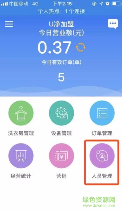 在正式開始之前,你需要加盟商app更新到v1.8版本以上,下載安裝之后,在主頁點(diǎn)擊【人員管理】。