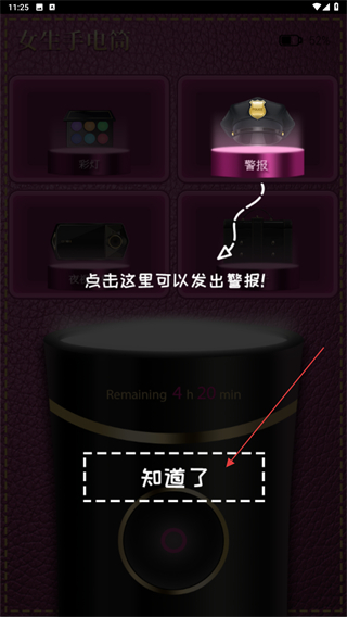 2、進入時,會跳出點擊這里可以發(fā)出警報的提示,點擊知道了。