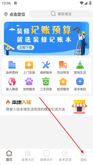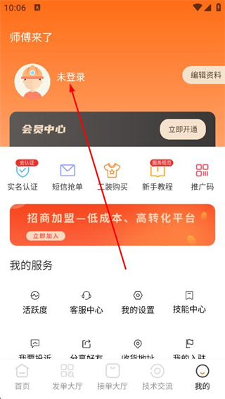 1、打開師傅來了,點(diǎn)擊底部導(dǎo)航欄最右側(cè)我的選項(xiàng)。
