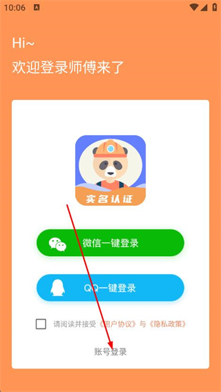 3、在登錄頁面,找到并點(diǎn)擊下方的賬號(hào)登錄選項(xiàng)。