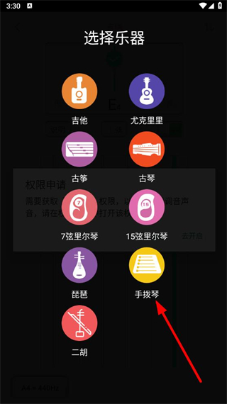 3、進入選擇樂器界面后,可看到有多種樂器選項,點擊想要切換的樂器如手撥琴。