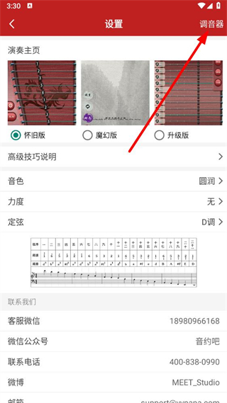 2、在設置頁面,點擊右上角的調音器選項。