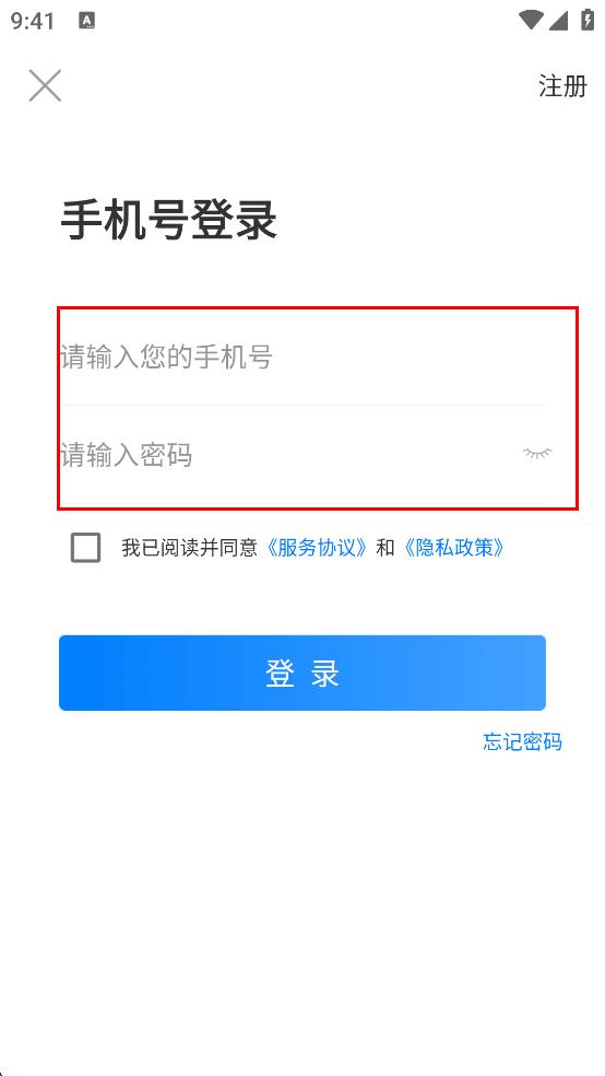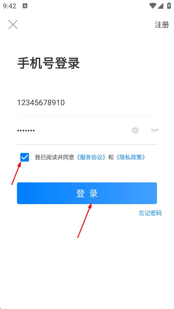 4、勾選我已閱讀并同意服務(wù)協(xié)議和隱私政策,然后點擊藍色的“登錄”按鈕。