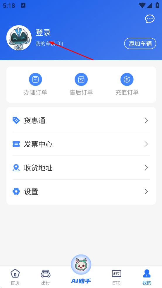 2、在個人中心頁面,點擊“登錄”按鈕,進入登錄界面。