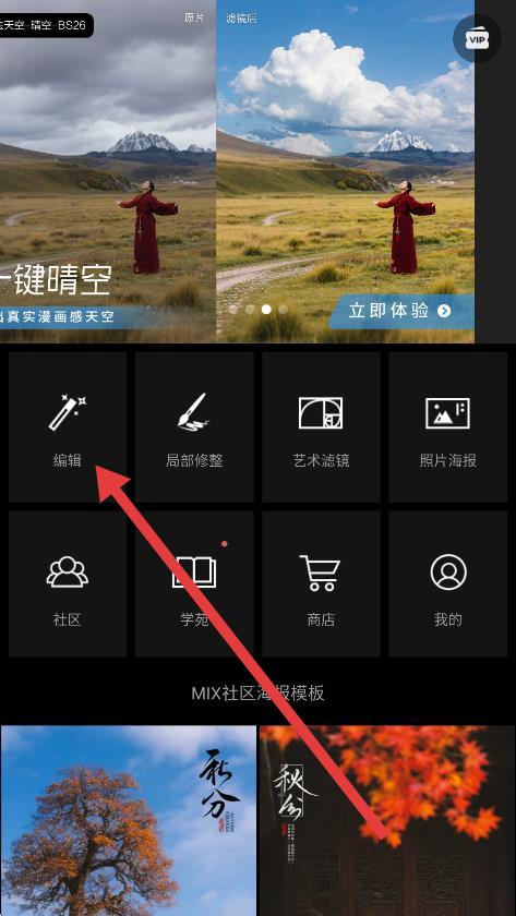 1、打開mix濾鏡大師app,點擊界面中的編輯選項。