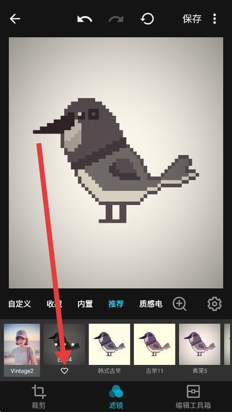 4、點擊濾鏡下方的心形圖標(biāo),即可成功收藏濾鏡。