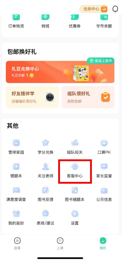 2、在個人頁面其他板塊中,找到并點擊客服中心選項。