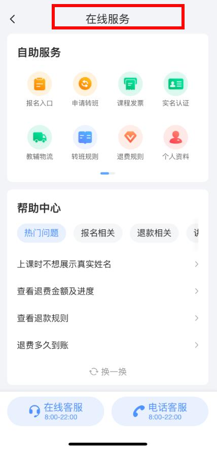 3、進入在線服務(wù)頁面后,頁面底部設(shè)有在線客服和電話客服,可按需選擇相應(yīng)方式聯(lián)系客服。