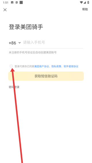 1、在進(jìn)入到登錄頁面時,需先點(diǎn)擊方框勾選表示同意協(xié)議。