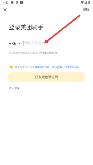 2、在勾選好同意按鈕后,點(diǎn)擊輸入框填寫手機(jī)號以便獲取驗(yàn)證碼。