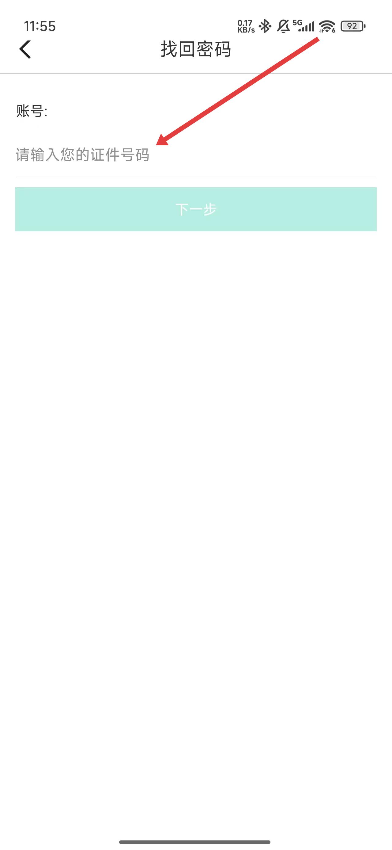2、在進(jìn)入到找回密碼頁面中,需在輸入框中填寫身份證號(hào)碼,驗(yàn)證后進(jìn)入下一步。