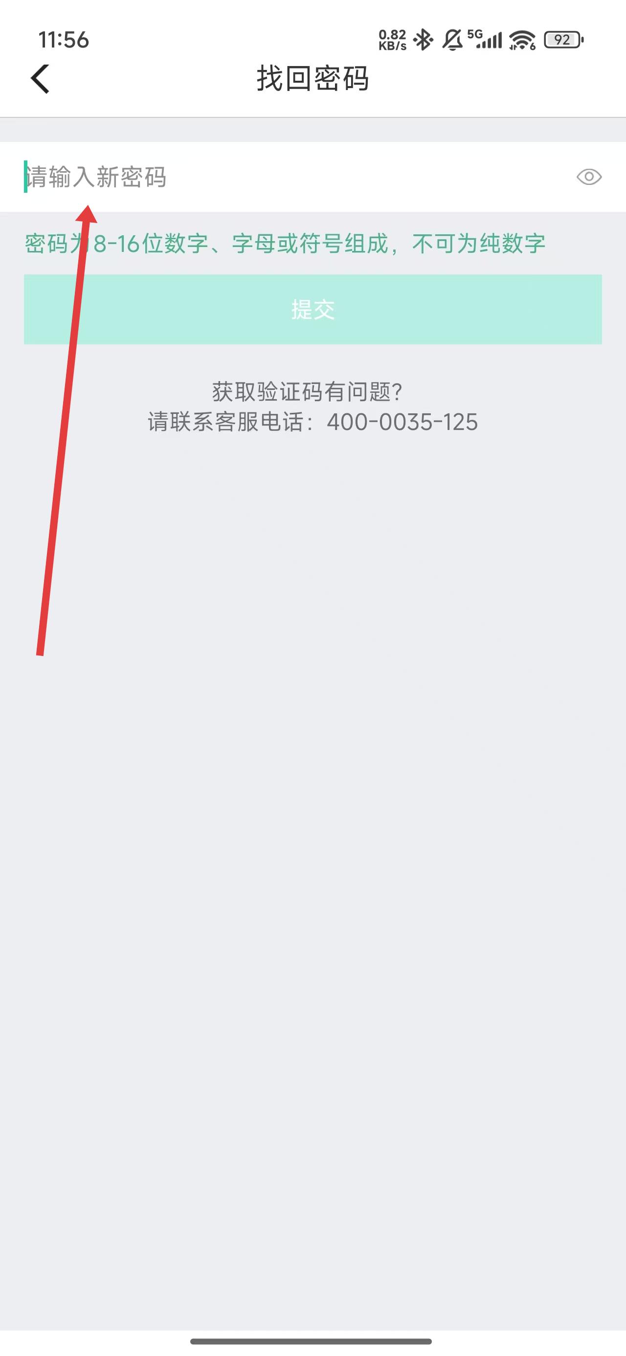 4、在輸入框中輸入新密碼后,點(diǎn)擊提交按鈕即可完成找回密碼操作。