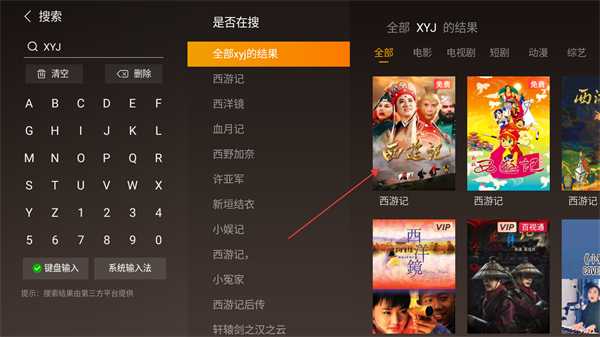 3、輸入后,在搜索結果中找到并點擊目標影視即可。