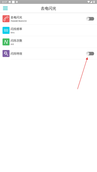 2、進(jìn)入到該頁(yè)面內(nèi),開啟閃光特效右側(cè)的開關(guān)按鈕。