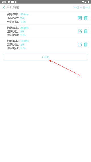 3、同時(shí)進(jìn)入到閃爍特效的頁(yè)面內(nèi),點(diǎn)擊+添加的按鈕。