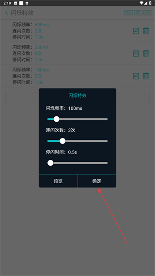 4、設(shè)置好閃爍頻率、連閃次數(shù)、停閃時(shí)間后,再點(diǎn)擊確定的按鈕即可。