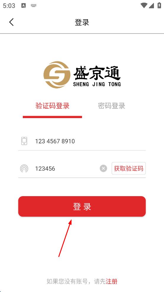 4、確認手機號和驗證碼輸入無誤后,點擊頁面中間的“登錄”按鈕。