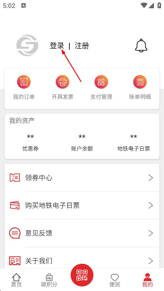 2、在“我的”頁面,找到“登錄”按鈕,點擊該按鈕。