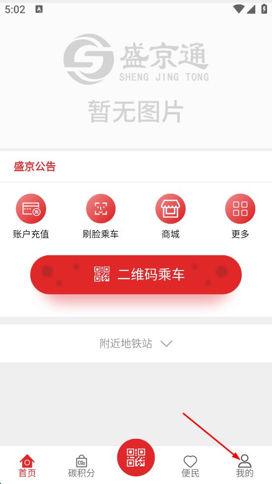 1、打開盛京通APP,進入首頁后,點擊頁面右下角“我的”選項。