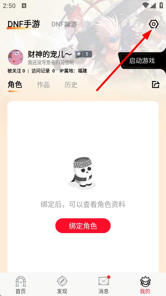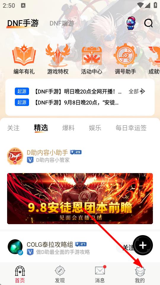 1、打開DNF助手應(yīng)用,點擊底部導(dǎo)航欄中的我的選項,進入個人頁面。