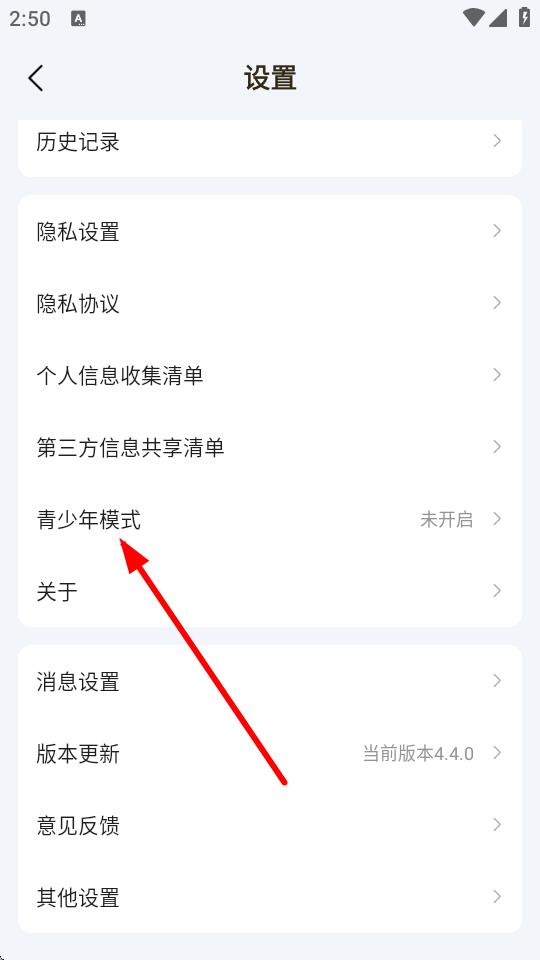 3、在設(shè)置界面里,找到并點擊青少年模式選項。