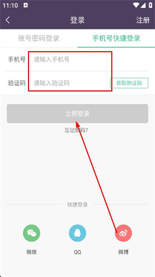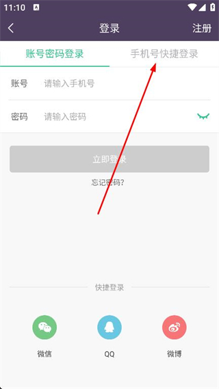 3、進(jìn)入登錄頁(yè)面后,找到并點(diǎn)擊上分手機(jī)號(hào)快捷登錄。