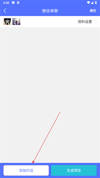 3、點(diǎn)擊頁面底部添加對話,在彈出的輸入框中編輯聊天內(nèi)容。