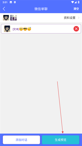 4、所有聊天內(nèi)容編輯完成后,點(diǎn)擊生成預(yù)覽查看制作好的微信單聊截圖效果即可保存。