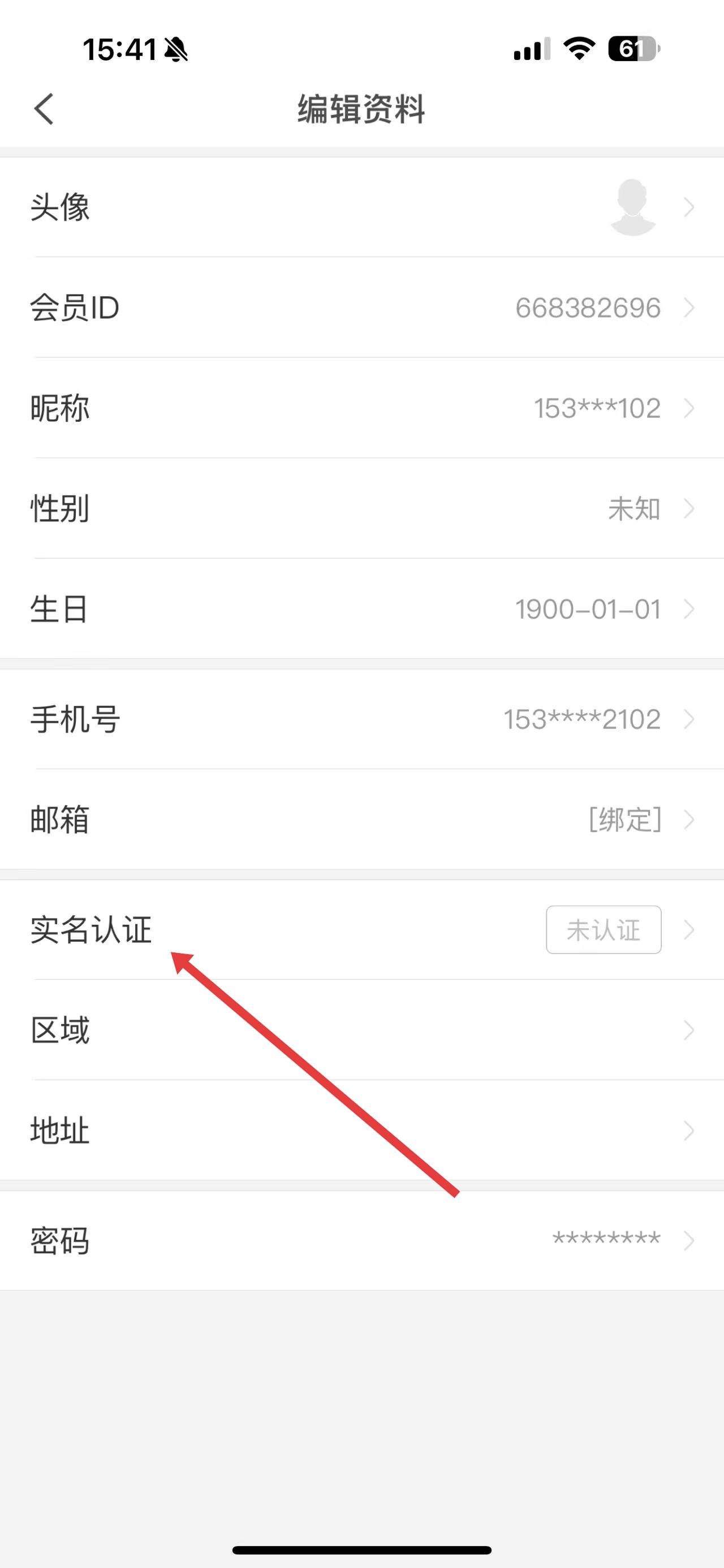 3、在編輯資料頁面里,找到并點擊實名認證選項。