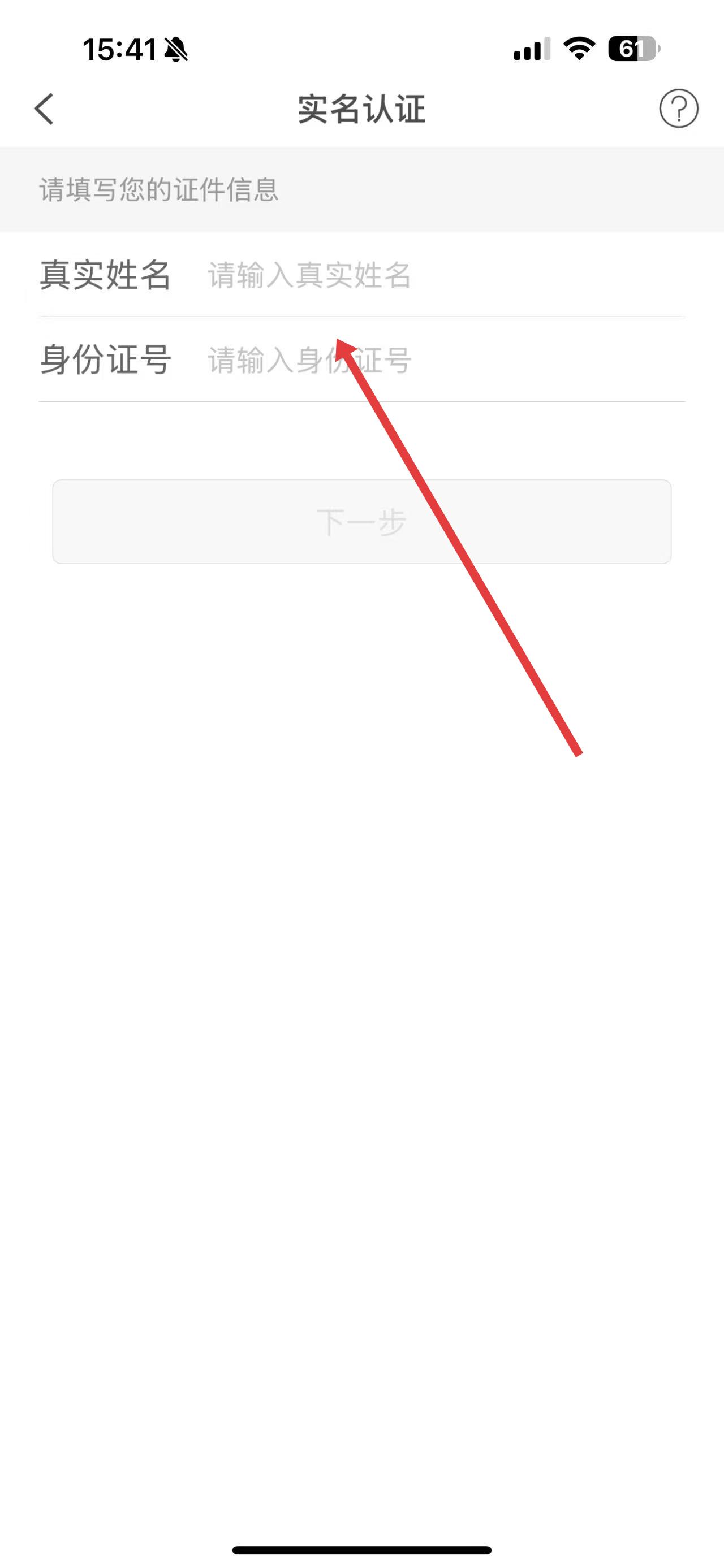 4、進入實名認證頁面后,在對應輸入框中填寫真實姓名和身份證號,填寫完成后點擊下一步,按照后續(xù)提示完成實名認證操作。