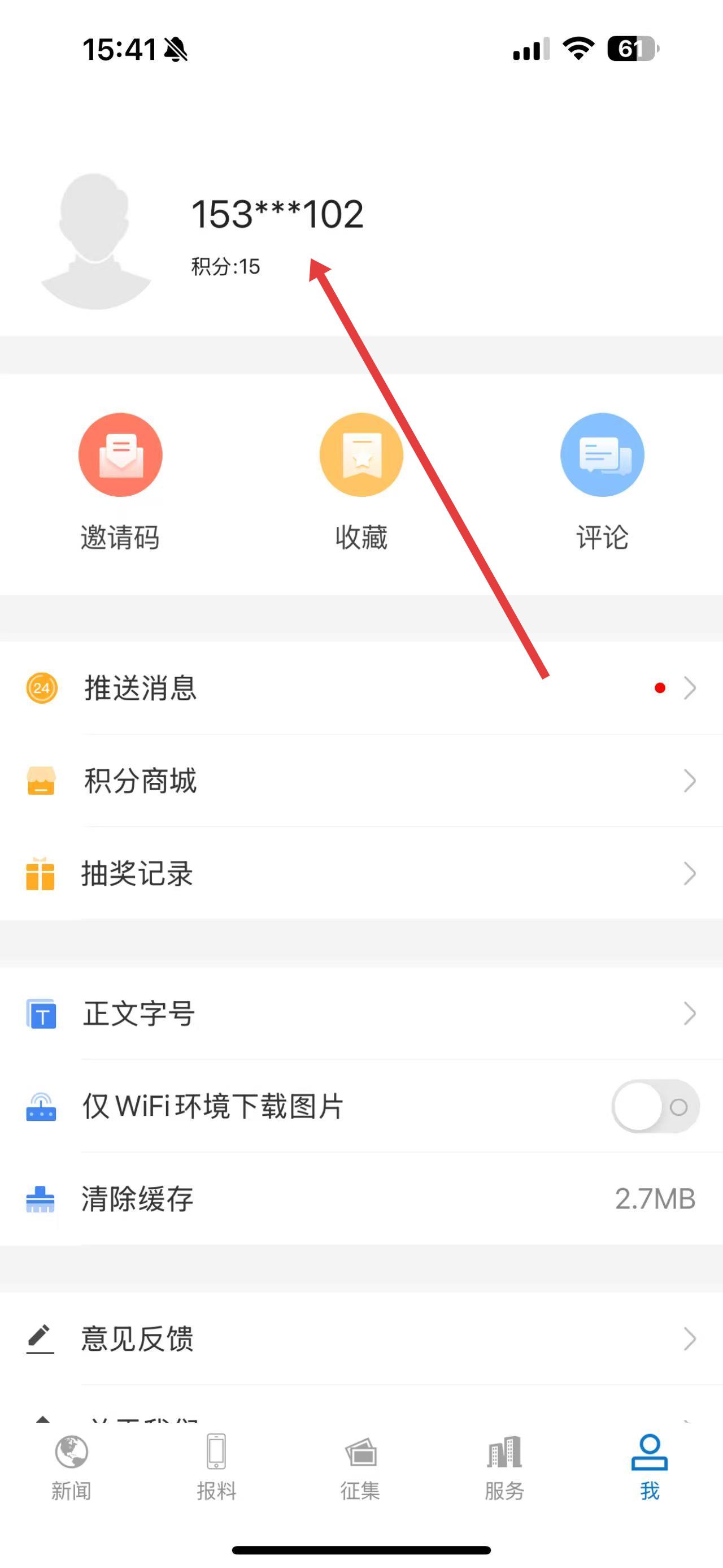 2、在個人頁面中,點擊頭像下方帶有手機號的區(qū)域,進入編輯資料頁面。