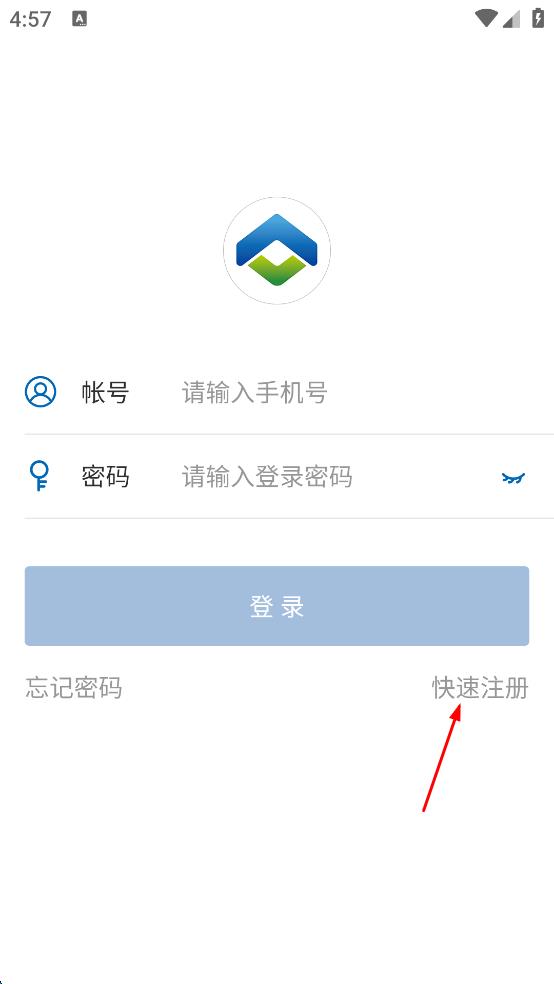 2、進(jìn)入登錄頁(yè)面,若沒(méi)有賬號(hào),點(diǎn)擊快速注冊(cè)選項(xiàng)。