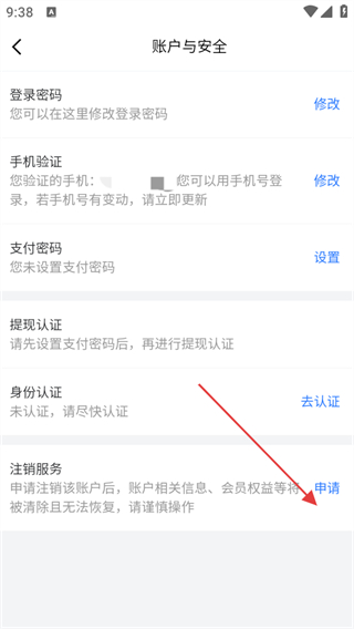 4、找到注銷服務(wù)選項(xiàng),點(diǎn)擊右側(cè)的申請(qǐng)按鈕。