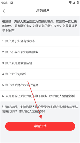 5、在注銷賬戶頁(yè)面,點(diǎn)擊申請(qǐng)注銷按鈕。