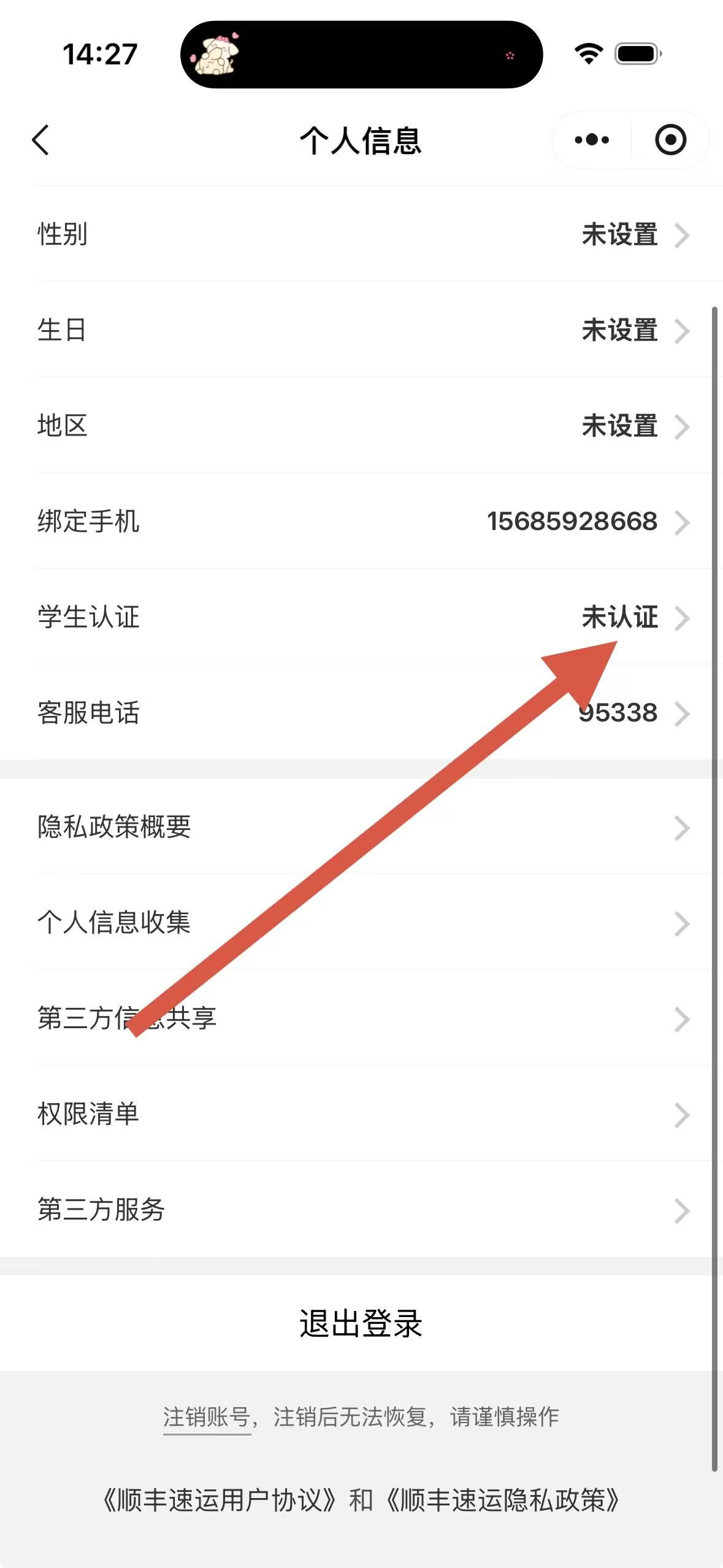 3、在設(shè)置界面里點(diǎn)擊個(gè)人信息,進(jìn)入個(gè)人信息頁(yè)面后找到學(xué)生認(rèn)證選項(xiàng)。