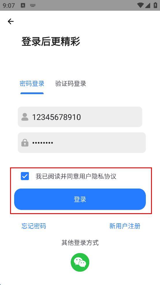 4、勾選“我已閱讀并同意用戶隱私協(xié)議”選項,然后點擊下方藍色的“登錄”按鈕,完成登錄操作。