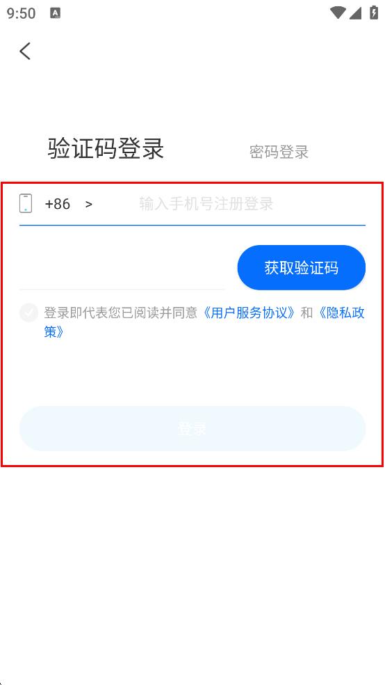 4、輸入手機號碼,勾選同意協(xié)議和隱私政策,點擊獲取驗證碼,后輸入驗證碼,進行登錄操作。