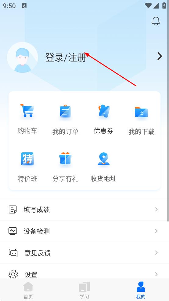 3、進入我的頁面后,點擊登錄/注冊選項,進入登錄界面。