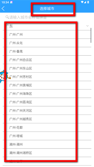 3、在選擇城市頁面,點(diǎn)擊查詢國內(nèi)城市搜索框,輸入要添加的城市名稱。