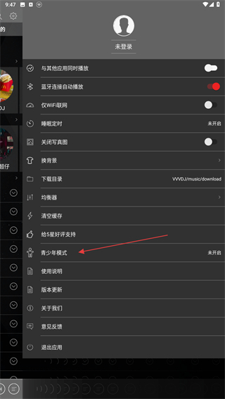 3、在右側(cè)彈出的菜單欄中,找到并點(diǎn)擊青少年模式。
