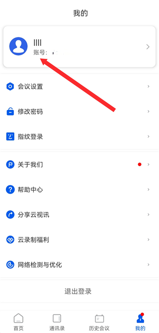 1、在云視訊的首頁,點擊底部我的,進入個人功能的頁面。