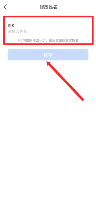 3、在修改姓名頁面,輸入新姓名后點擊保存,完成名字修改操作。