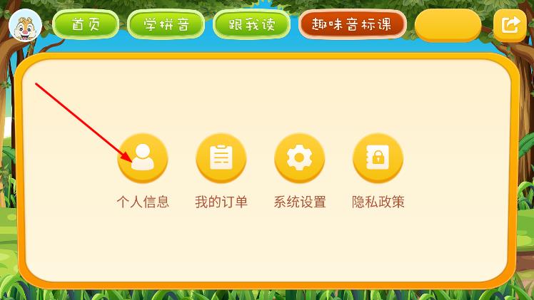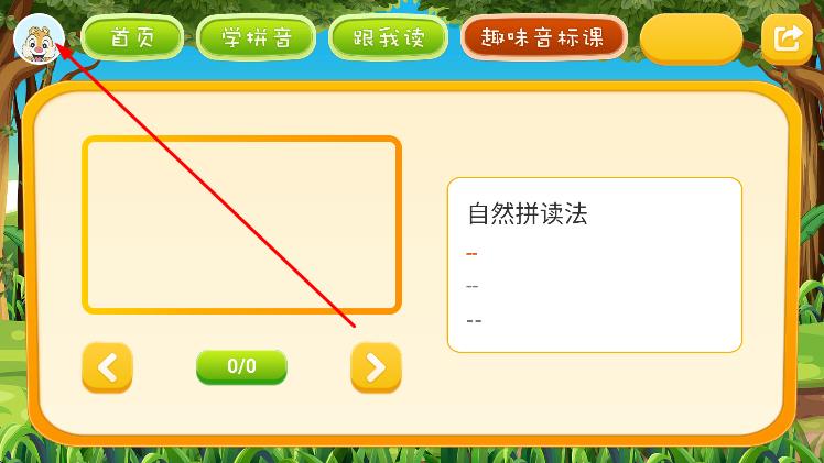 1、打開拼音點(diǎn)讀app,點(diǎn)擊左上角的頭像圖標(biāo)。