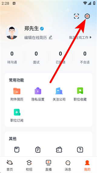 2、在個人頁面中,點擊右上角的設置圖標,進入設置界面。