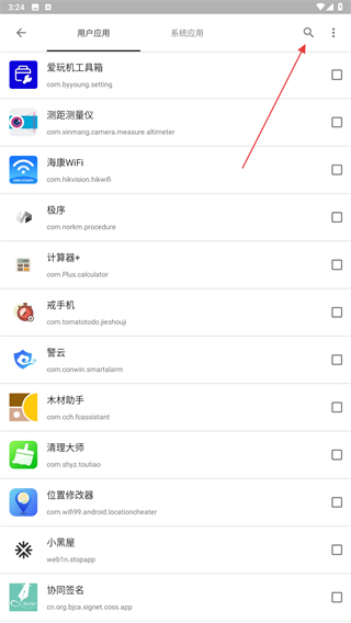 3、在用戶應(yīng)用的頁面內(nèi),點擊右上搜素的功能圖標(biāo)。