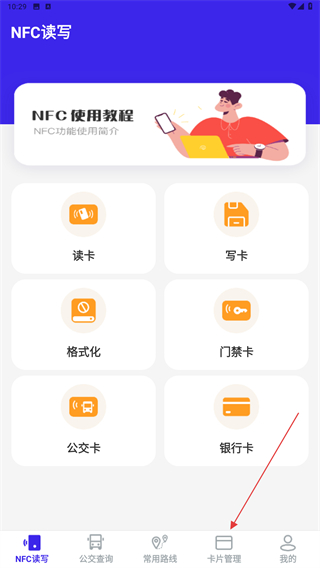 2、進(jìn)入到首頁內(nèi),點(diǎn)擊導(dǎo)航欄中卡片管理的圖標(biāo)功能。
