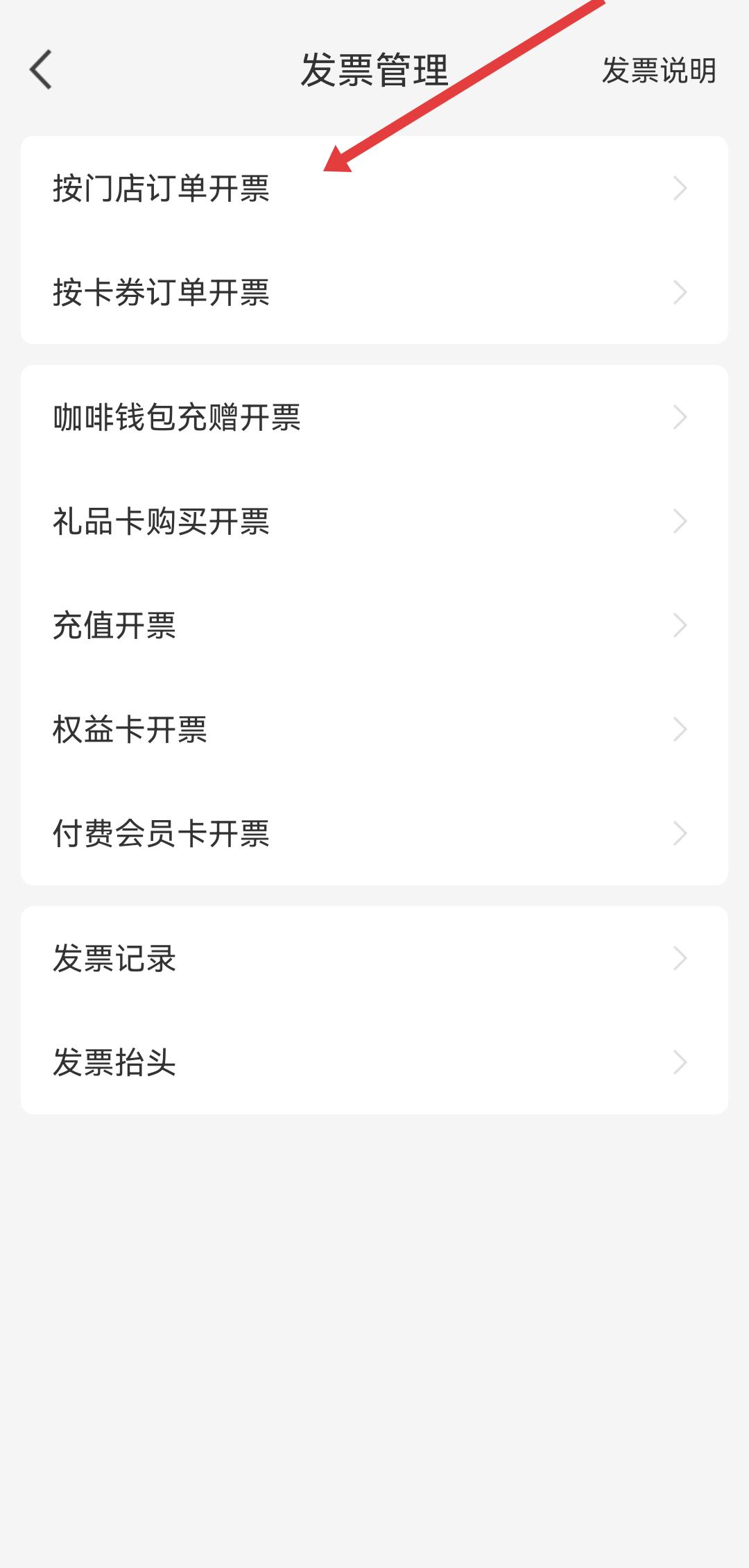 2、在發(fā)票管理的頁面,我們這里選擇點擊按門店訂單開票的選項,選擇對應(yīng)消費的門店。