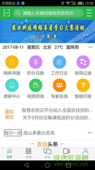知農(nóng),涵蓋服務(wù)、管理、咨詢、課程、我的五大模塊,旨在為廣大涉農(nóng)群體提供農(nóng)業(yè)科技知識(shí)查詢、工作內(nèi)容即時(shí)管理、多場(chǎng)景咨詢、在線培訓(xùn)、經(jīng)驗(yàn)分享、個(gè)性化信息定制等服務(wù)。