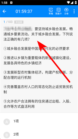 4、在答題界面,即可開始解答題目如行測(cè)單選題,完成答題操作。